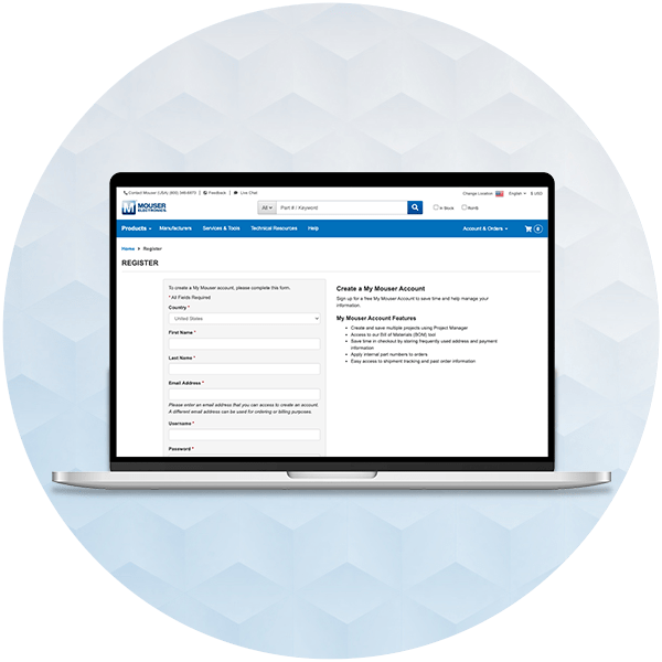 Hantera ditt MyMouser-konto – direkt på datorn. Importera artikellistor, skapa materialförteckningar, håll koll på beställningar, skriv ut fakturor och kom åt API-lösningar.