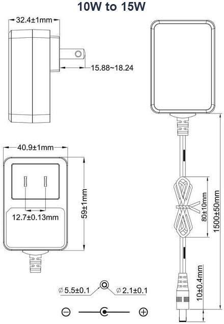 - 10W to 15W: 59mm x 40.9mm x 32.4mm (2.32" x 1.61" x 1.27")